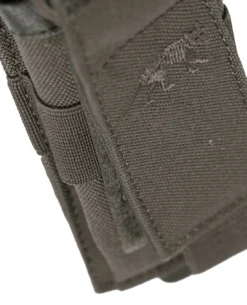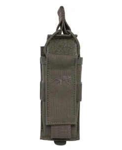 Die Tasmanian Tiger SGL Mag Pouch MP7 20 + 30 Rounds MKII IRR ist eine widerstandsfähige Einzelmagazintasche aus robustem Cordura 700 den IRR für Magazine der MP7 (20 oder 30 Schuss). Das Magazin wird in der Pouch durch einen längenverstellbaren Deckel fixiert und kann wahlweise zusätzlich mittels Bungee-Cord gegen Verlust abgesichert werden. Die Anbindung an bestehende Ausrüstung erfolgt über ein modernes Reverse-M.O.L.L.E.-System aus Laminat.
